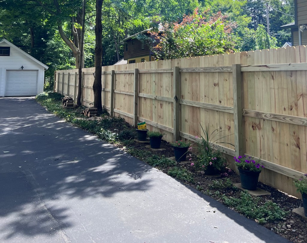 We offer a variety of different types of wood fences, from the normal 6′ tall dog ear privacy fence to shadowbox fences and 4′ wood picket fences. If you’re looking for a cheaper option for privacy for your yard, wood fences are the way to go.
